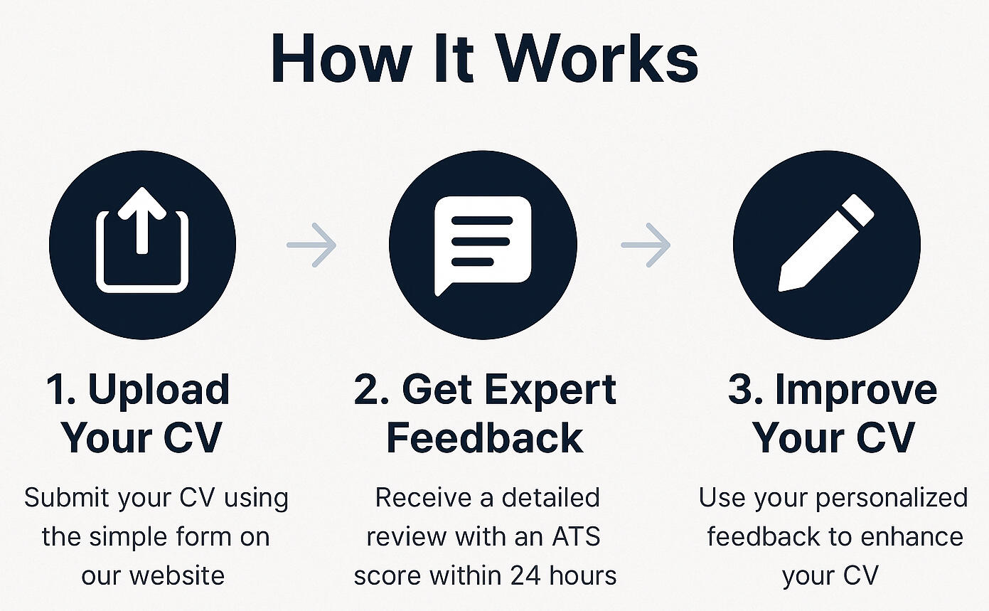 Not hearing back from applications? Upload your CV and I’ll show you exactly what’s holding you back - with personalised, expert suggestions and your ATS score all in 24 hours.