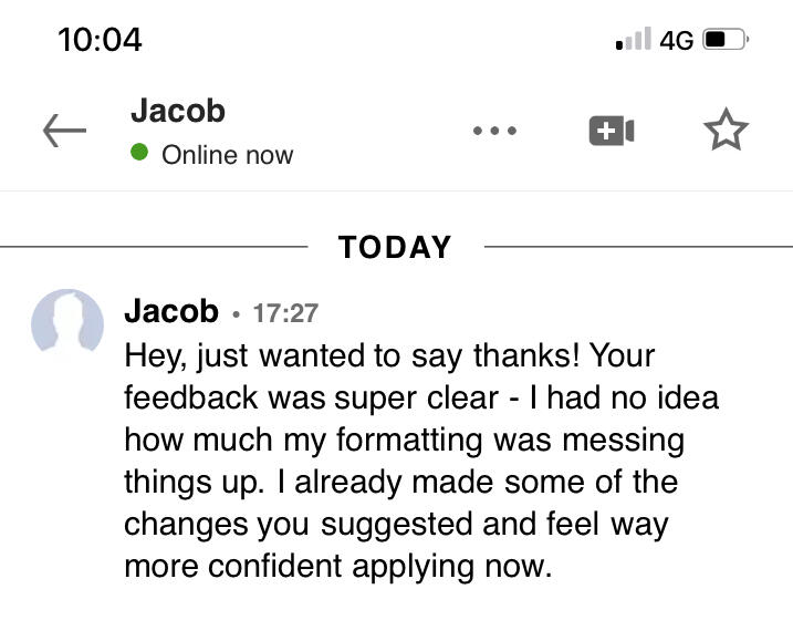 I’ll personally review your CV and show you exactly what’s working, what’s holding you back, and how to fix it - plus your ATS score.